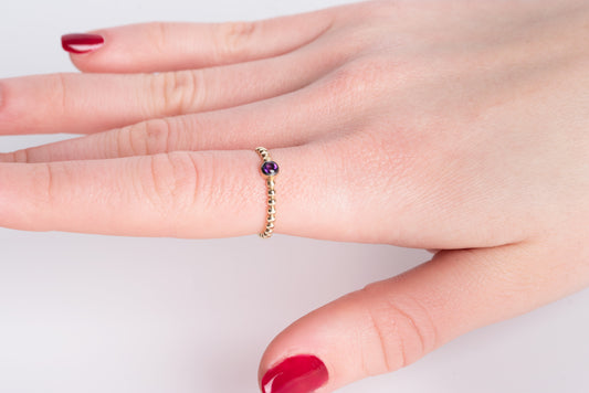 14k Gold Beaded Birthstone Ring: Dainty Gemstone Jewelry