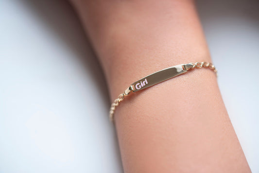 14k Gold Baby Girl ID Bracelet: Pink Enamel, Custom Engraving