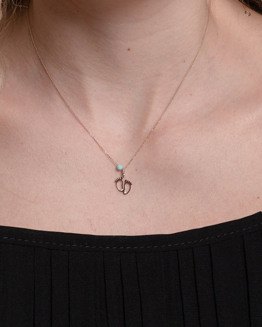 14K Gold Baby Footprint Necklace: Cubic Zirconia & Turquoise